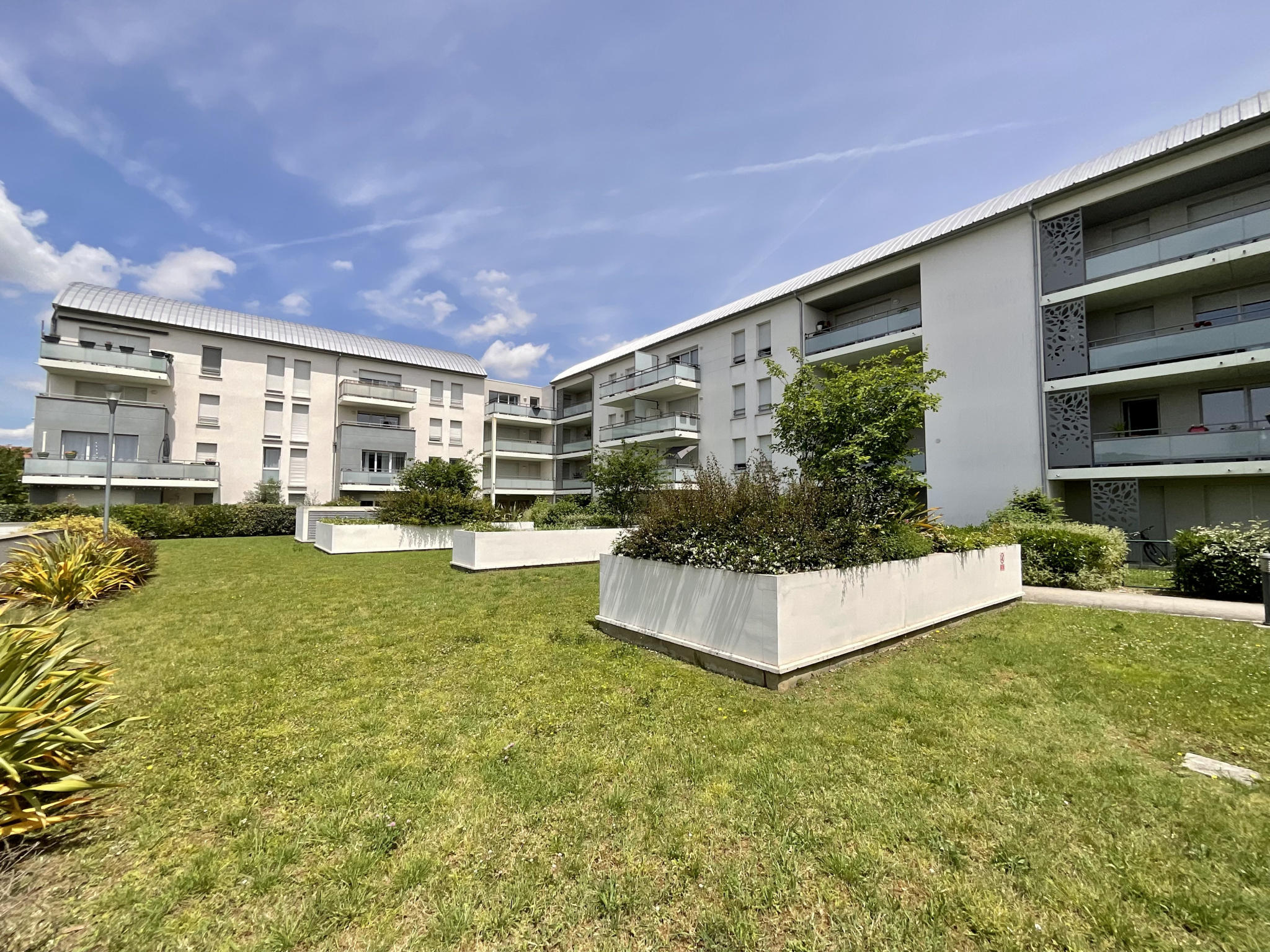 Au calme, appartement T3 de 57 m2 au 1er étage avec un balcon de presque 10 m2 avec vue sur les jardins de la cour intérieure dans une résidence récente et sécurisée.